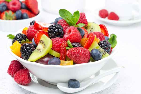 A vibrant seasonal fruit bowl bursting with nature’s bounty includes fresh and juicy pineapple, cantaloupe, honeydew, grapes, and mixed berries.