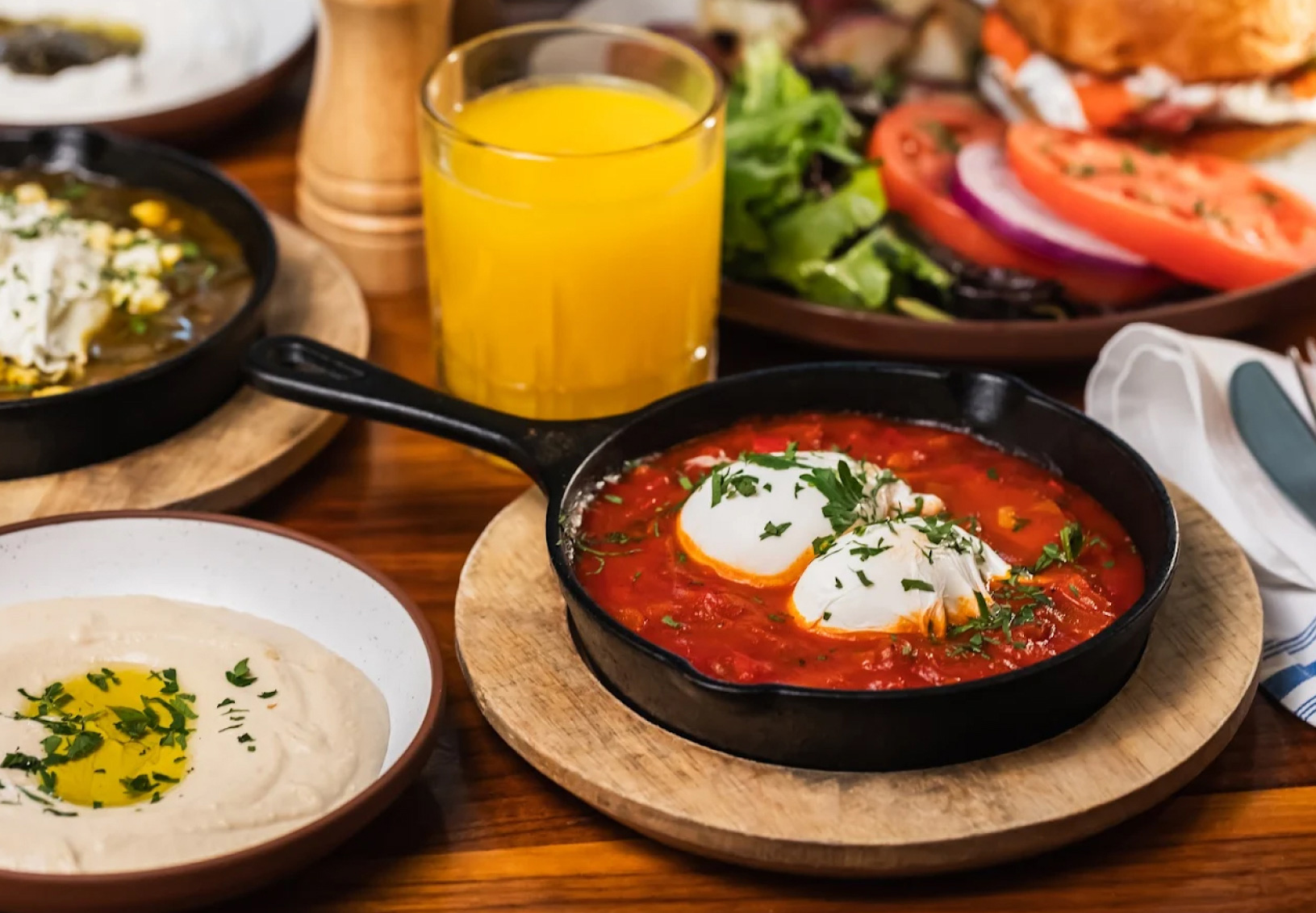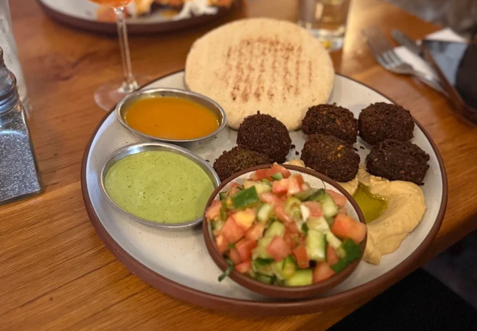 A cozy casual-dining spot serving flavorful Israeli and Mediterranean dishes such as hummus, shawarma, fresh salads, and brunch favorites, offering a vibrant atmosphere and diverse options for lunch, dinner, and gatherings.